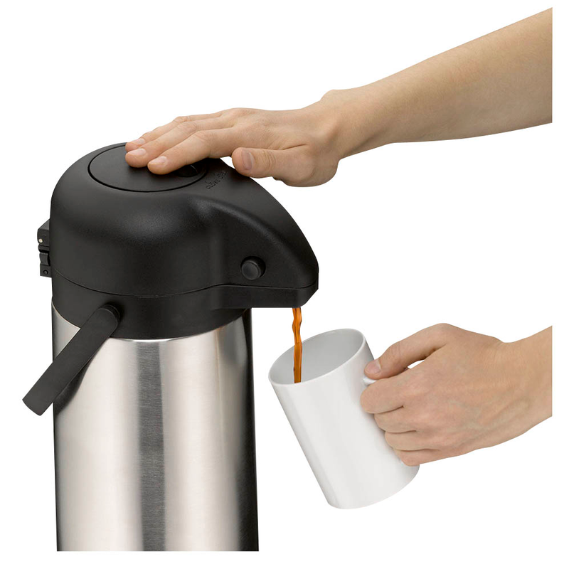 Die alfi Isolierkanne zum Pumpen ist geeignet für bis zu 2,5 l Heiß- oder Kaltgetränke. Sie hat einen mattierten Körper aus hochwertigem Edelstahl und einen stabilen Pumphebel mit Arretierung. Ihre praktische Deckelautomatik können Sie kinderleicht mit einer Hand bedienen. Zusätzlichen Komfort bietet der drehbare Boden. Und dank Toptherm Vakuum-Isolierkörper bleibt Heißes heiß und Kaltes kalt. Sie ist bruchfest und ist für ca. 20 Tassen geeignet.