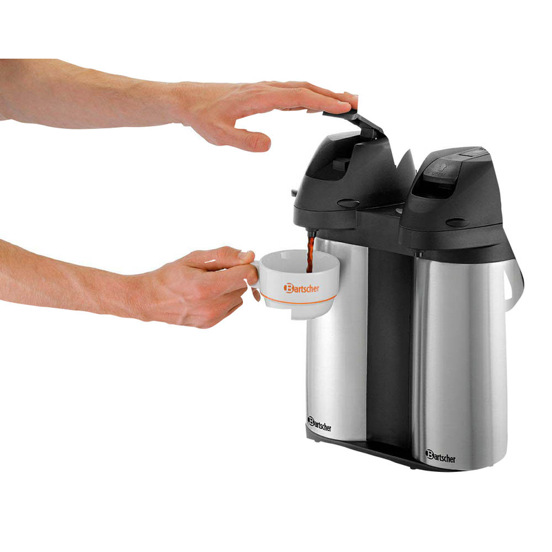 | Besonderheiten | 2x 1,9 Liter – Heiße Getränke im Doppelpack: Mit der doppelten Isolierpumpkanne können mit nur einem Gerät 2 verschiedene Heißgetränke gleichzeitig angeboten werden. Sei es am Buffet, in der Kantine, bei Veranstaltungen oder Meetings. Mit Pumpdeckel-Sicherung. Nicht spülmaschinengeeignet. Temperaturverlust pro Stunde ca. 2,0 °C |