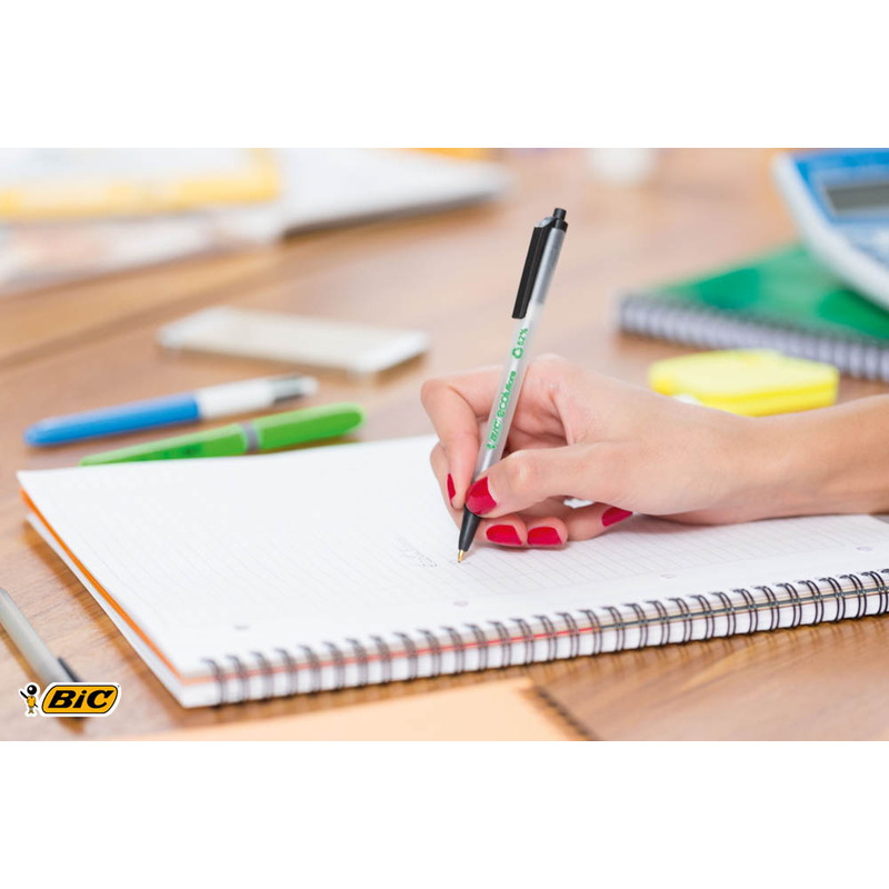 Zeichnet sich durch angenehme Handhabung, deutliche Schriftzüge und Robustheit gleichermaßen aus – der BIC Kugelschreiber ECOlutions® Clic Stic™ transparent/blau, Schreibfarbe: blau, 1 St.. Das Modell schreibt äußerst flüssig, besitzt eine dokumentenechte Mine und sieht darüber hinaus auch noch gut aus.