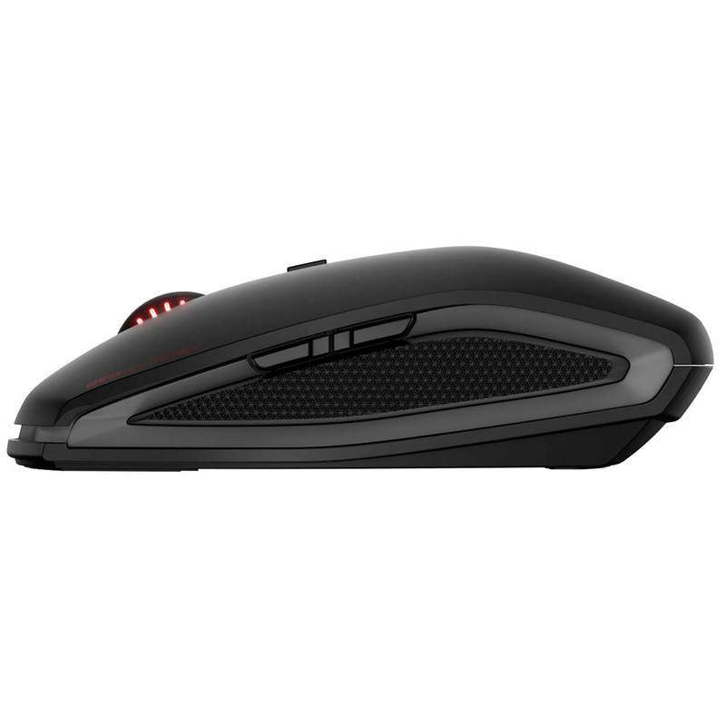 Technologie und Ergonomie sind hier speziell für Rechtshänder ausgerichtet. Zu bedienungsfreundlichem Arbeiten verhelfen Ihnen die 6 integrierten Tasten und natürlich das eingebaute Scrollrad. Betrieben wird dieses Produkt mit Batterien. Dank des optischen Sensors reagiert das Gerät auch bei Unreinheiten oder Unebenheiten des Untergrunds einwandfrei und sorgt für komfortables Arbeiten mit einer präzisen Mauszeigersteuerung. Wie schnell die Reaktion des Cursors ist, können Sie am Wert der Auflösung ablesen. Hier gilt: Je mehr DPI (dots per inch), desto schneller. Der Sensor hat hier eine Auflösung von 1.000/2.000 dpi (umschaltbar).