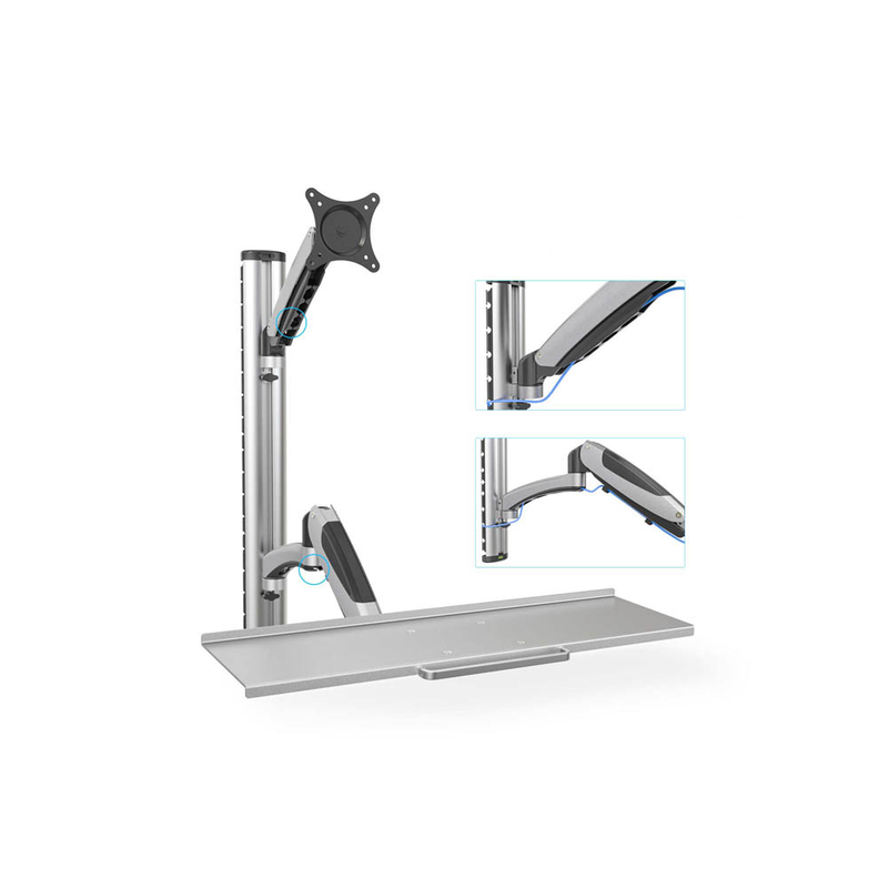 Für eine gesündere Arbeitsposition – die DIGITUS Monitor-Maus-Tastatur-Halterung DA-90354 silber für 1 Monitor, 1 Tastatur, 1 Maus, Wandhalterung