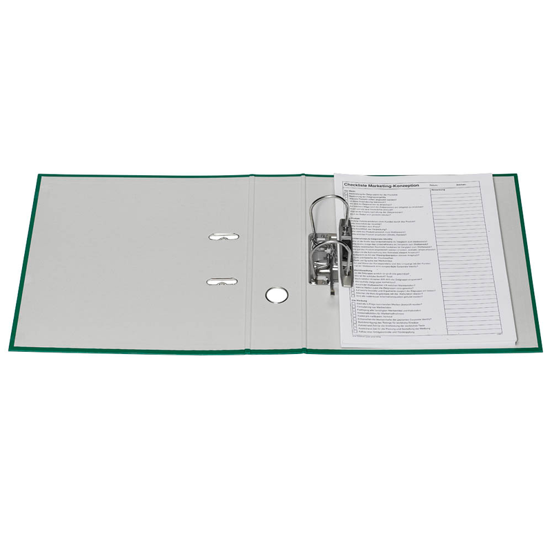 Zur besseren Auffindbarkeit Ihrer Unterlagen ist eine Rückenfarbe in grün sehr zweckdienlich. Ablagen können dadurch sowohl optisch gegliedert als auch projekt-, auftrags- oder kundenbezogen abgelegt werden. Damit Sie und Ihre Kollegen auch nach dem Verstauen die Unterlagen schnell zuordnen können, hilft Ihnen der Rücken. Diesen können Sie ganz leicht mit einem beschriftbaren Rückenschild versehen und prompt haben Sie den Überblick über die Unterlagen. Wenn der Büroklassiker in schwer erreichbarer Höhe oder dicht gedrängt steht, können Sie ihn dank seines Grifflochs mit nur einem Finger aus dem Regalfach ziehen.