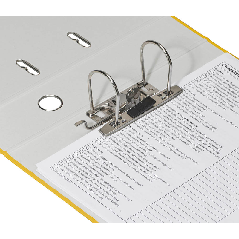 Soll der DONAU Klassik Ordner gelb Karton 7,5 cm DIN A4 künftig in Ihrem Büro Platz finden und für mehr Ordnung sorgen, dann können Sie hier bereits die wichtigsten Eigenschaften sehen: