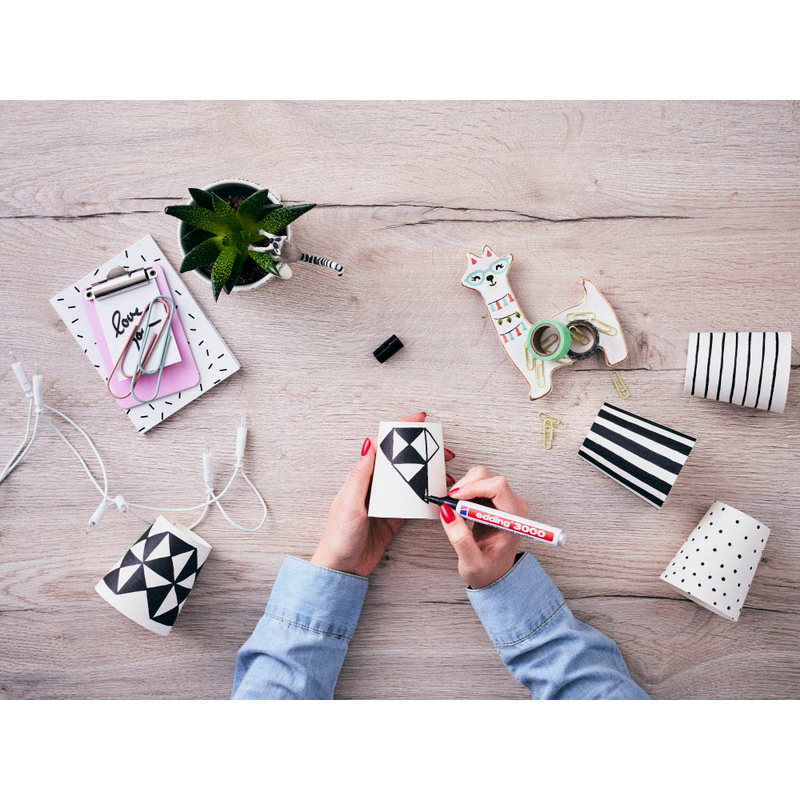 Nutzen Sie den edding 3000 Permanentmarker schwarz 1,5 - 3,0 mm, 1 St. für fast alle Materialien! Er hilft dabei, Dinge zu ordnen, zu markieren, zu gestalten oder einfach den Überblick zu behalten. Perfekt geeignet ist das Produkt für fast allen Materialien wie Holz, Metall, Glas, Plastik oder Karton.
