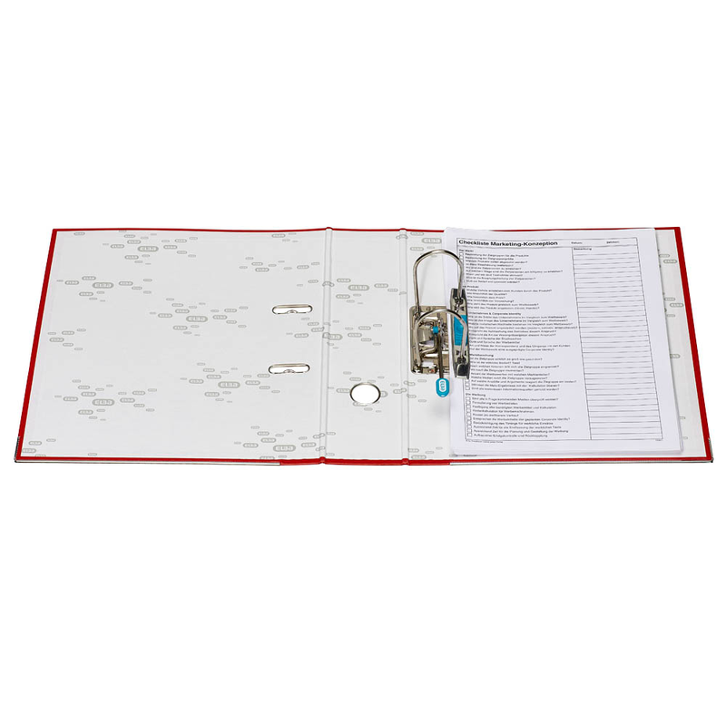Nach der Archivierung ist es wichtig, den Ordnerinhalt von Außen parat zu haben. Daher ist auf dem Rücken ein einsteckbares und somit austauschbares Rückenschild. Nehmen Sie den roten Ordnerrücken , um eine bestimmte Aufteilung vorzunehmen. Mit nur einem Handgriff können Sie Ihren Ablagehelfer dank des funktionalen Grifflochs mit nur einem Finger aus dem Fach ziehen.