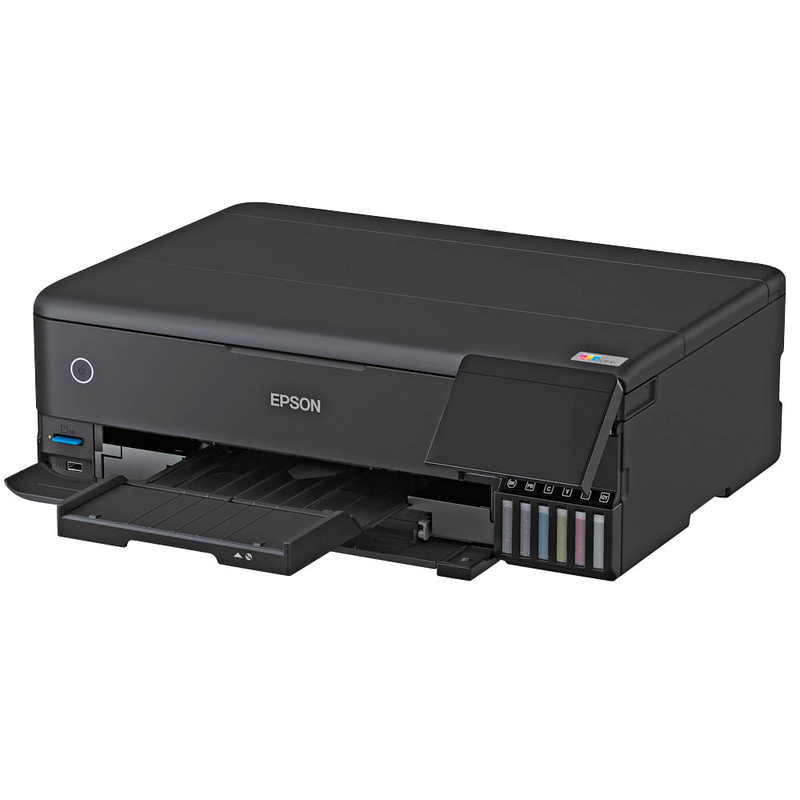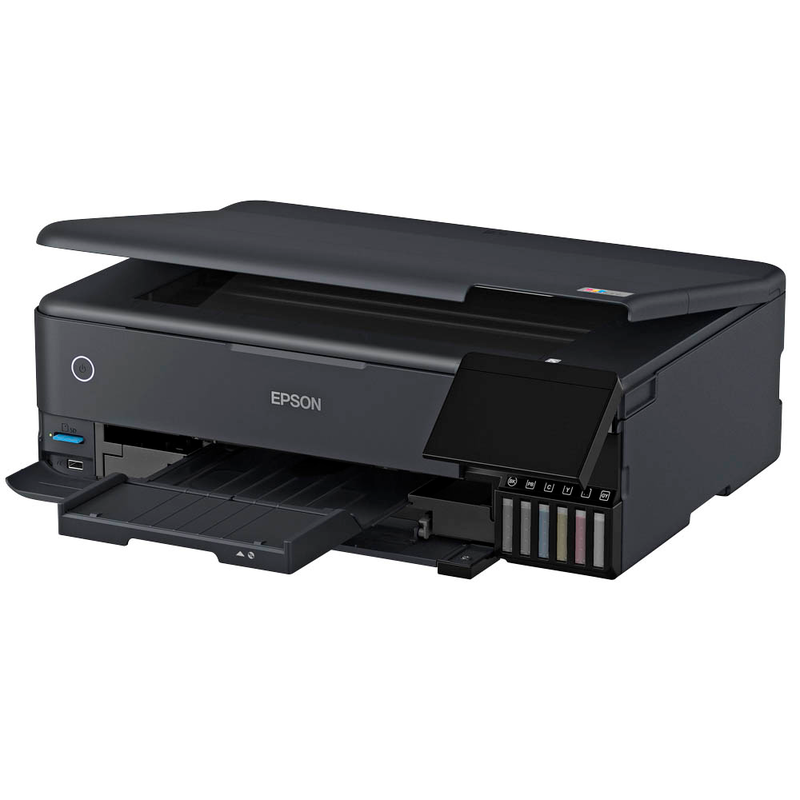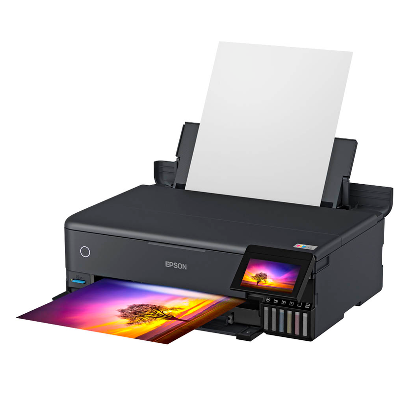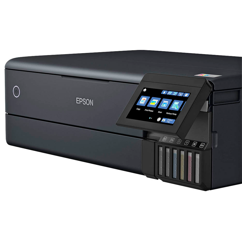 Besonderheiten 3-in-1 Multifunktionsdrucker mit Tintentank (Sechs Farben) zum Drucken, Scannen und Kopieren. A4- und Fotopapierkassette sowie zwei hintere A3+-Zuführungen für dickere Medien.