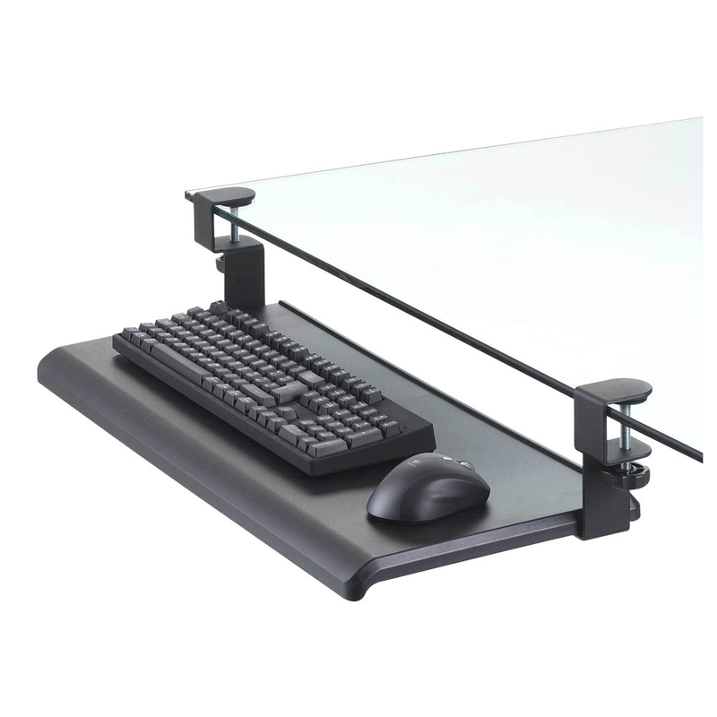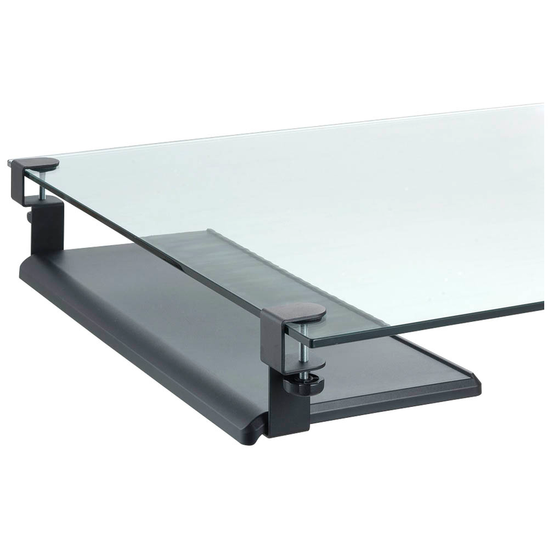 Der 70,0 x 31,0 cm (BxT) große Auszug ist am Tisch rechts und links montierbar und damit sehr flexibel einsetzbar. Mittels zweier Klemmen können Sie ihn kinderleicht anbringen. Der Tastaturauszug mit Mausablage eignet sich für Tischstärken bis 4,0 cm. Egal ob Glas oder Holz – sämtliche Arbeitsflächen sind hierfür möglich. Dank des Auszugs können Sie Ihre Tastatur ganz einfach weg schieben, wenn Sie diese gerade nicht nutzen und herausziehen, wenn Sie sie benötigen. Somit steht sie nicht auf Ihrem Schreibtisch und nimmt keinen wertvollen Platz weg. Die Bewegung des Auszugs ist stets absolut flüssig.