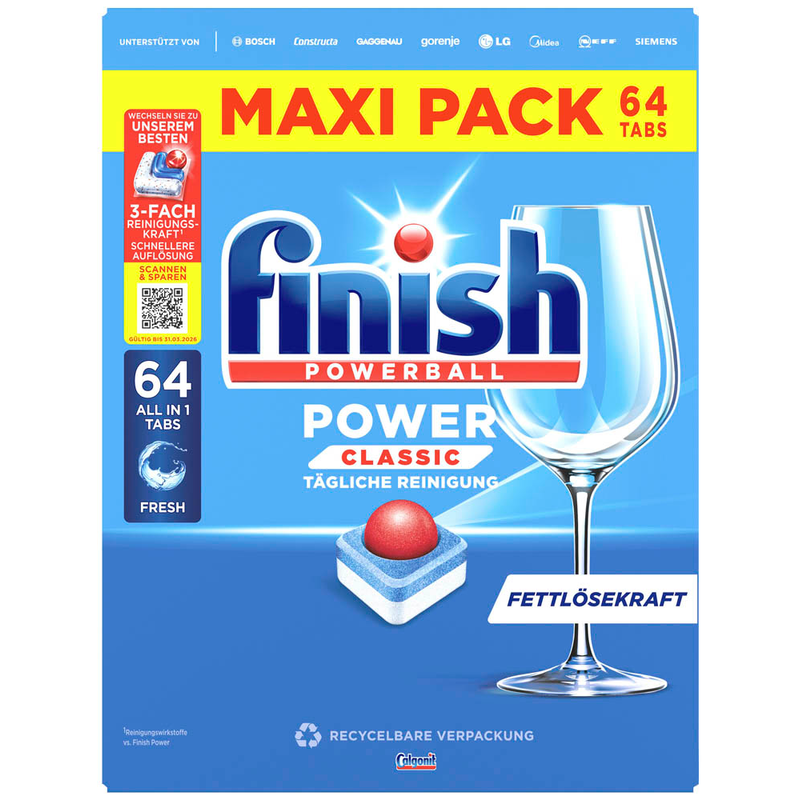 Artikelbild 2 für finish POWERBALL POWER CLASSIC ALL IN 1 Spülmaschinentabs 64 St., Artikelnummer 539959 Artikelbild 3 für finish POWERBALL POWER CLASSIC ALL IN 1 Spülmaschinentabs 64 St., Artikelnummer 539959