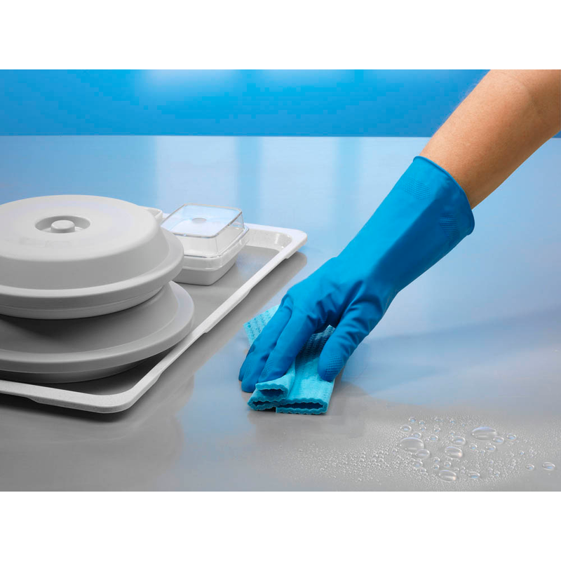 Mit einer verlängerten Stulpe von 30 cm schützen die Handschuhe auch den Unterarm zuverlässig. Der Rollrand sorgt für zusätzliche Stabilität und verhindert das Abtropfen von Flüssigkeiten.