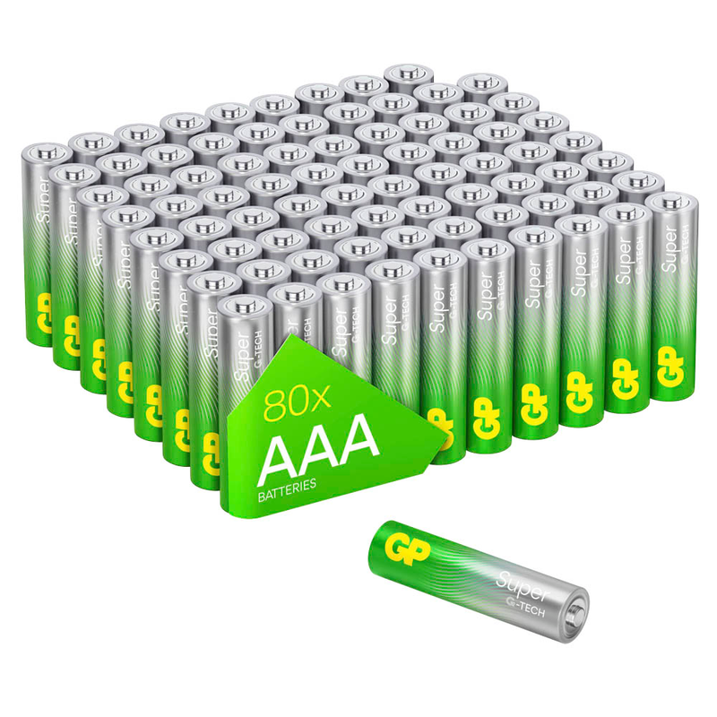 Die 80 GP Batterien SUPER Micro AAA 1,5 V sind eine zuverlässige Energiequelle und eignen sich hervorragend für den langfristigen Einsatz. Technische Geräte des täglichen Bedarfs werden dank diesem Produkt schnell zum Leben erweckt.