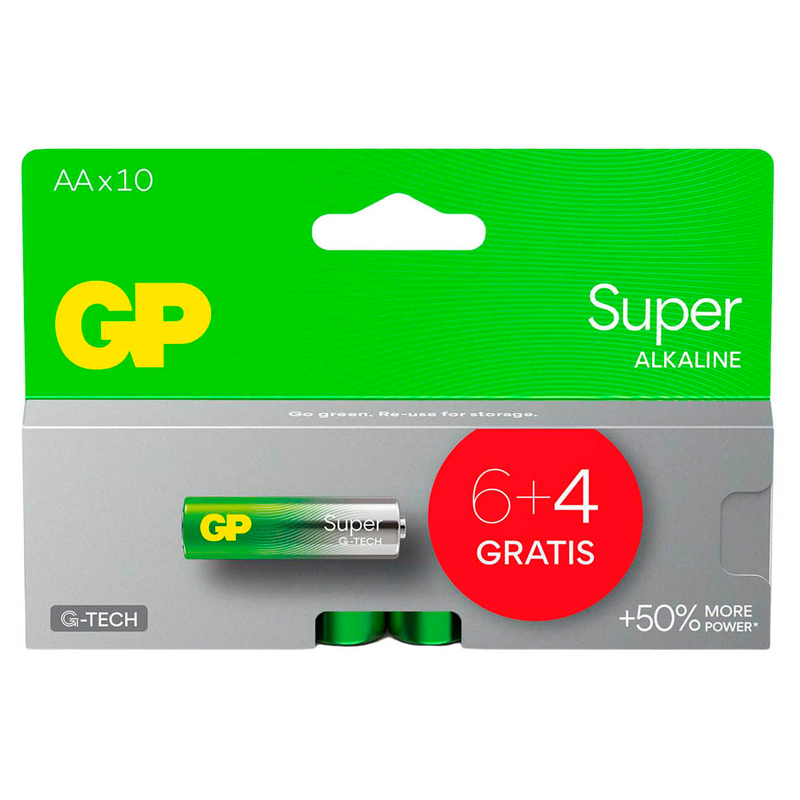 6 + 4 GRATIS: 6 GP Batterien SUPER Mignon AA 1,5 V + GRATIS 4 St.