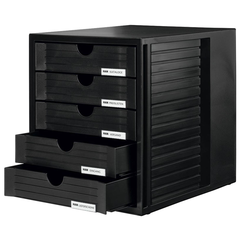 HAN Schubladenbox System-Box schwarz 1450-13, DIN A4 mit 5 Schubladen: elegant und praktisch