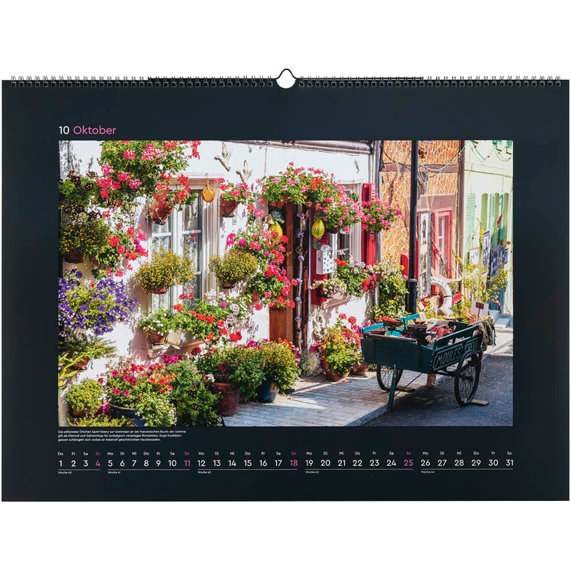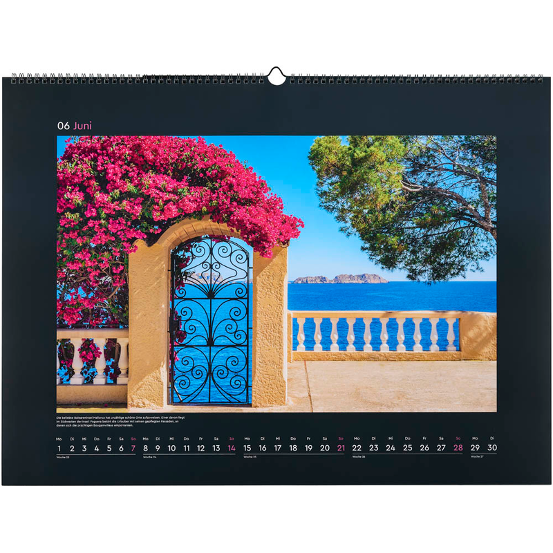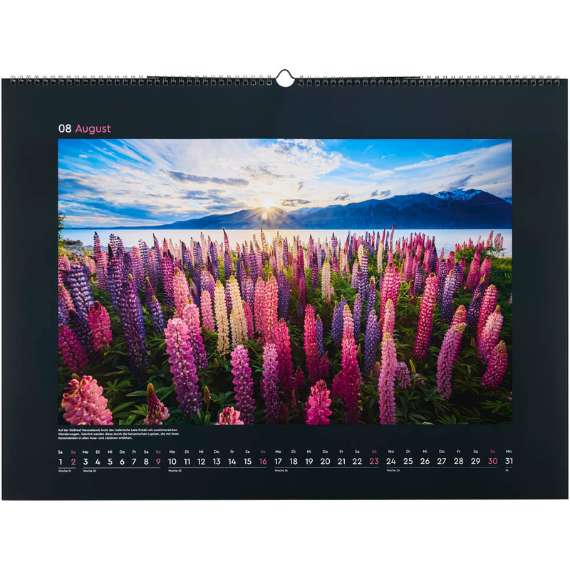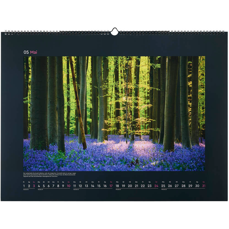 Jeden Monat erwartet Sie ein schönes neues Landschafts-Bild. Sie erhalten also nicht nur einen praktischen Helfer, sondern auch ein Accessoire für Ihre Wand. Das Kalendarium ist wie folgt aufgeteilt: 1 Monat = 1 Blatt. Der Monat ist vorbei und Sie möchten zum nächsten Blatt gelangen? Kein Problem, einfach das aktuelle Blatt umschlagen. Hierfür verfügt der KUNTH Monats-Wandkalender Aufgeblüht 2026 über eine Spiralbindung.