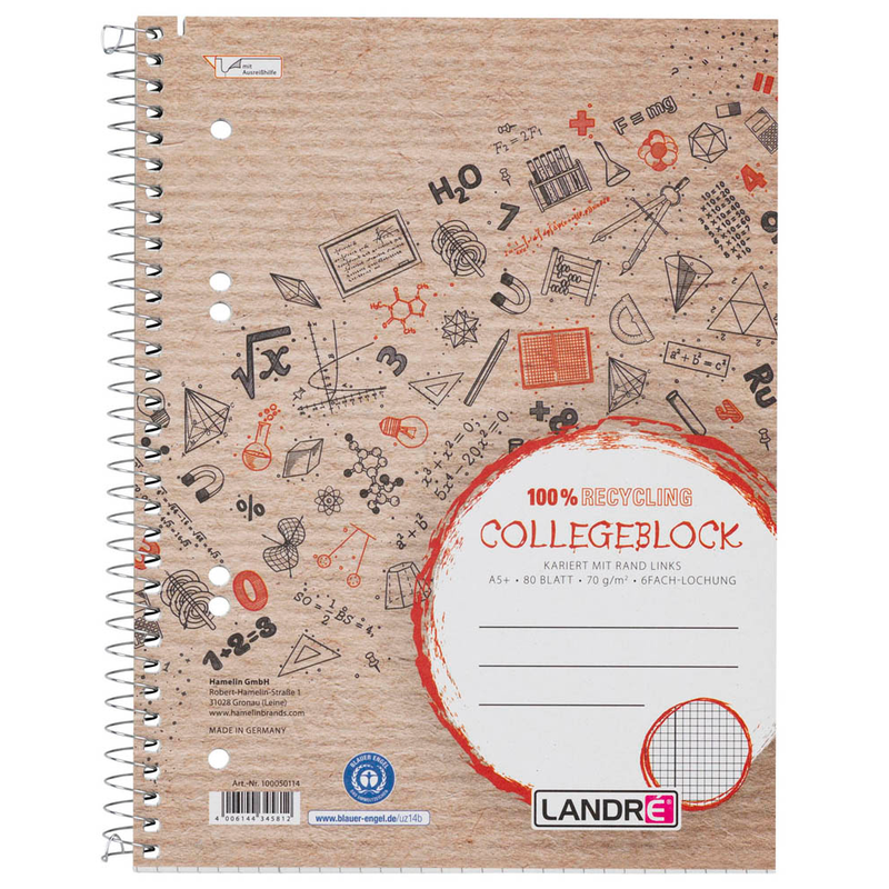 Artikelbild 1 für LANDRÉ® Collegeblock Recycling Kleinformat kariert DIN A5 Innenrand, 1 St., Artikelnummer 703452