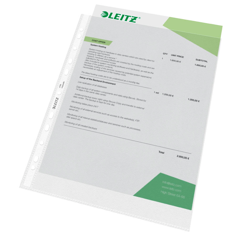 Die LEITZ Prospekthüllen 4790 DIN A4 transparent genarbt 0,09 mm bieten sicheren Schutz vor Schmutz und Feuchtigkeit