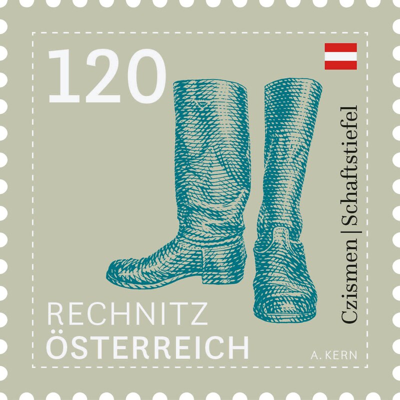 Porto bis 30.04.2025: Österreichische Post 1,20 € Briefmarken ECO S "Czismen Schaftstiefel - Rechnitz" selbstklebend, 4 St.