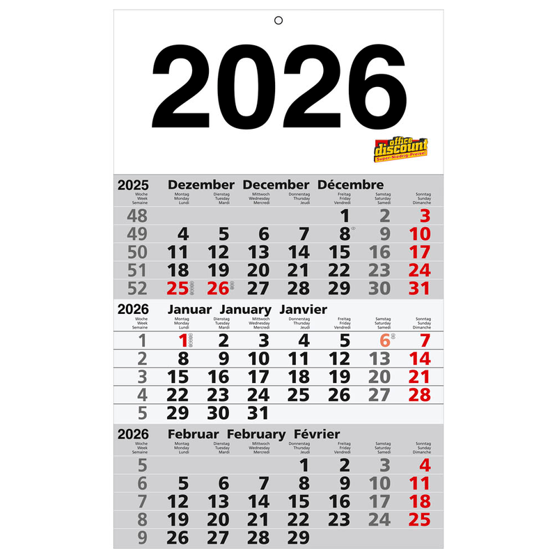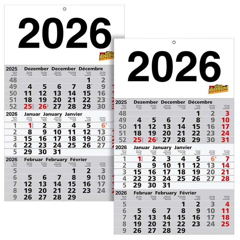 Dann sind Sie hier genau richtig! Die Planung Ihrer Termine für 2026 wird garantiert glatt laufen. Bestellen Sie die 2 office discount 3-Monats-Wandkalender 2026 jetzt bequem in unserem Online-Shop.