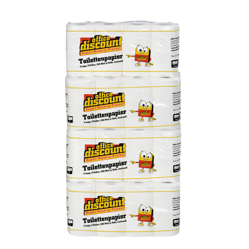 Überzeugen Sie sich von der ausgezeichneten Qualität des office discount Toilettenpapiers 3-lagig, 112 Rollen und bestellen Sie es jetzt preisgünstig und bequem hier im Online-Shop!