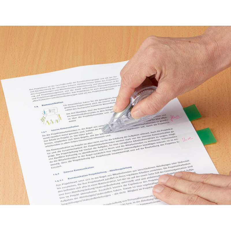 Der Inhalt des Korrekturroller ist lösemittelfrei und lässt sich dank des transparent Looks immer auf die aktuelle Restmenge überprüfen. So können Sie schon im Vorfeld reagieren, wenn der Vorrat des Bandes langsam zur Neige geht und rechtzeitig neue Korrekturroller bestellen. Mit Softgrip ausgestattet, liegt der Korrekturroller gut in der Hand und lässt sich präzise einsetzen. 1 Pack = 2 St.