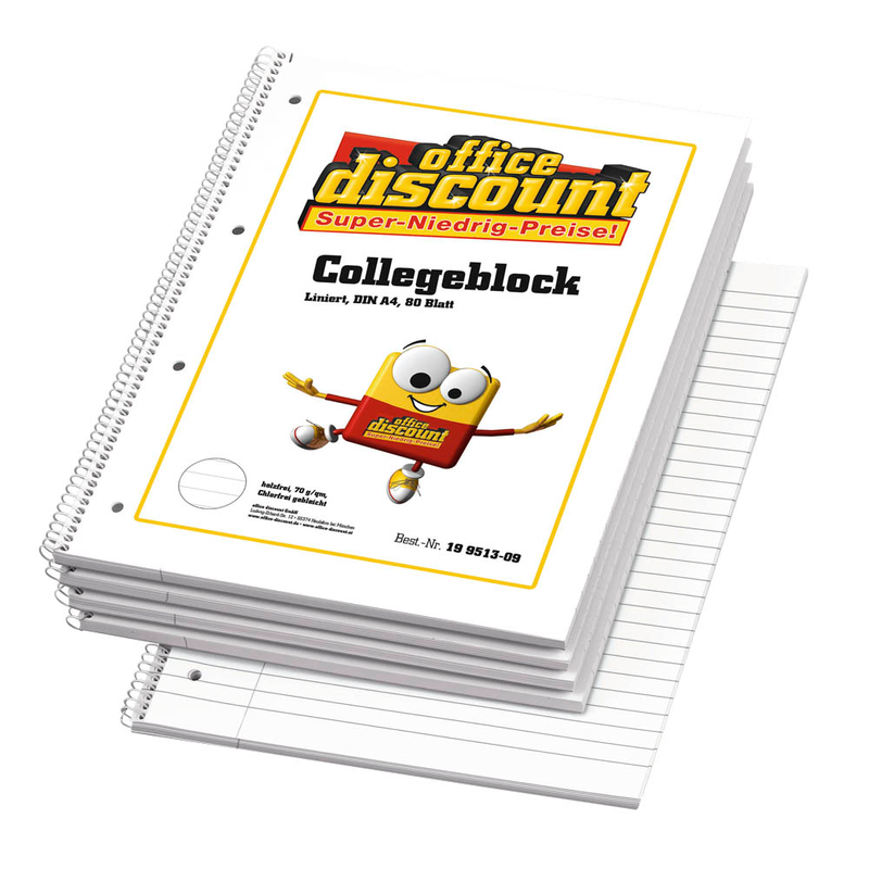 Artikelbild für office discount Collegeblöcke liniert DIN A4 Innenrand, 5 Blöcke, Artikelnummer 199513