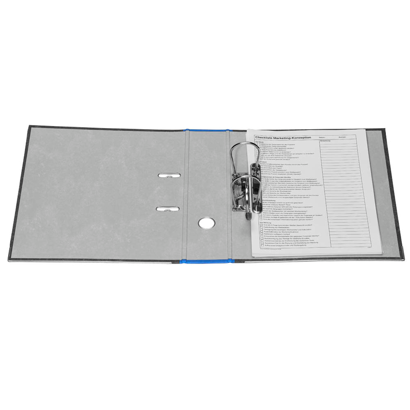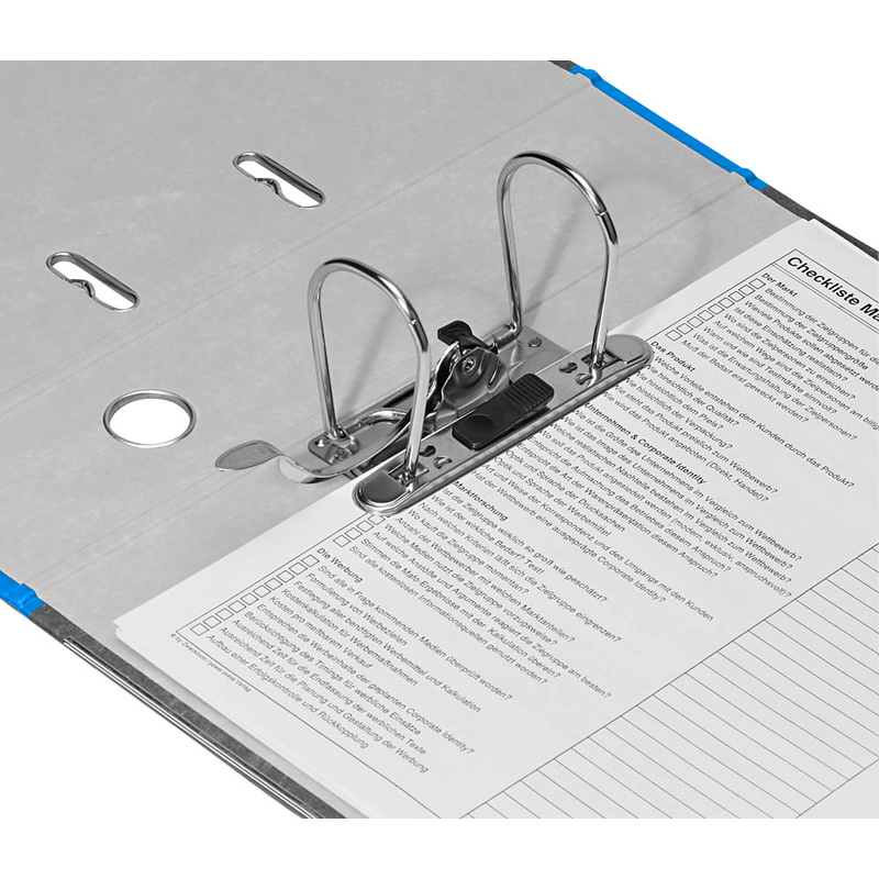 Das Ablegen Ihrer Blätter gelingt dank Qualitäts-Hebelmechanik ohne Probleme. Die einsortierten Unterlagen werden zuverlässig zusammengehalten und Sie haben zu jeder Zeit schnellen Zugriff darauf. Von Vorteil sind die Raumsparschlitze im Deckel, denn durch die zwei kleinen Öffnungen mit Metallverstärkung lässt sich der Organisationshelfer sicher verschließen und platzsparend verstauen.