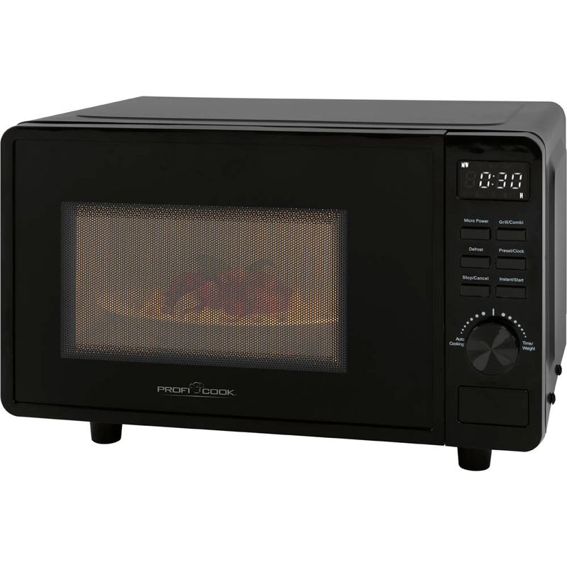 Die ProfiCook PC-MWG 1278 Mikrowelle 700 W schwarz ist ein unverzichtbarer Alltagshelfer, der die Zubereitung Ihres Essens erheblich beschleunigt. Ein schon vorbereitetes Gericht kann damit zum Beispiel in wenigen Minuten verzehrbereit gemacht werden.
