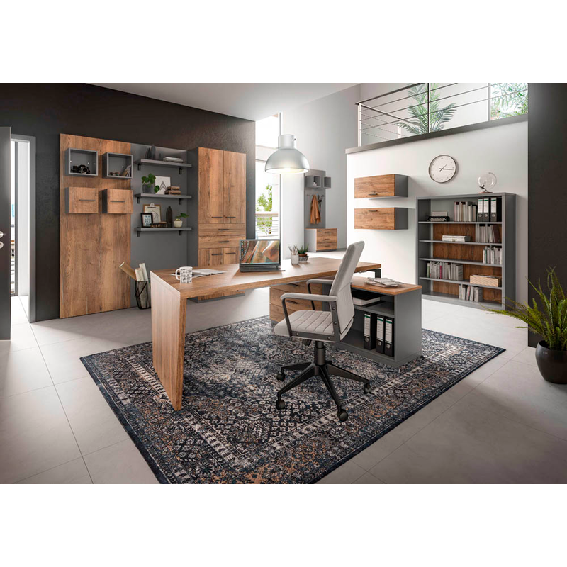 röhr quantum Schreibtisch eiche Trapezform, Wangen-Gestell grau 176,3/210,0 x 80,0/100,0 cm