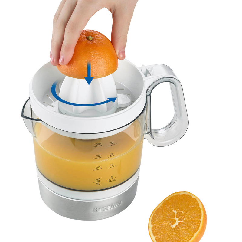 Mit Zitrusfrüchten lassen sich leckere Cocktails mixen oder Gerichte aufpeppen und mit der SEVERIN CP 3535 Zitruspresse elektrisch weiß 40 W holen Sie garantiert den ganzen Saft aus Orangen, Zitronen oder Limetten heraus.