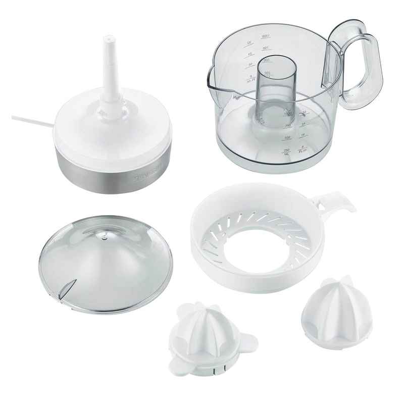 Wenn Sie die SEVERIN CP 3535 Zitruspresse elektrisch weiß 40 W bestellen, dann erhalten Sie die Lieferung inklusive 2 verschieden große Presskegel.