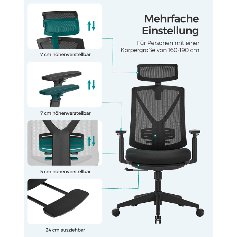 Dann bestellen Sie den SONGMICS Bürostuhl, OBN61BKV1 Stoff schwarz, Gestell schwarz einfach hier in unserem Online-Shop!