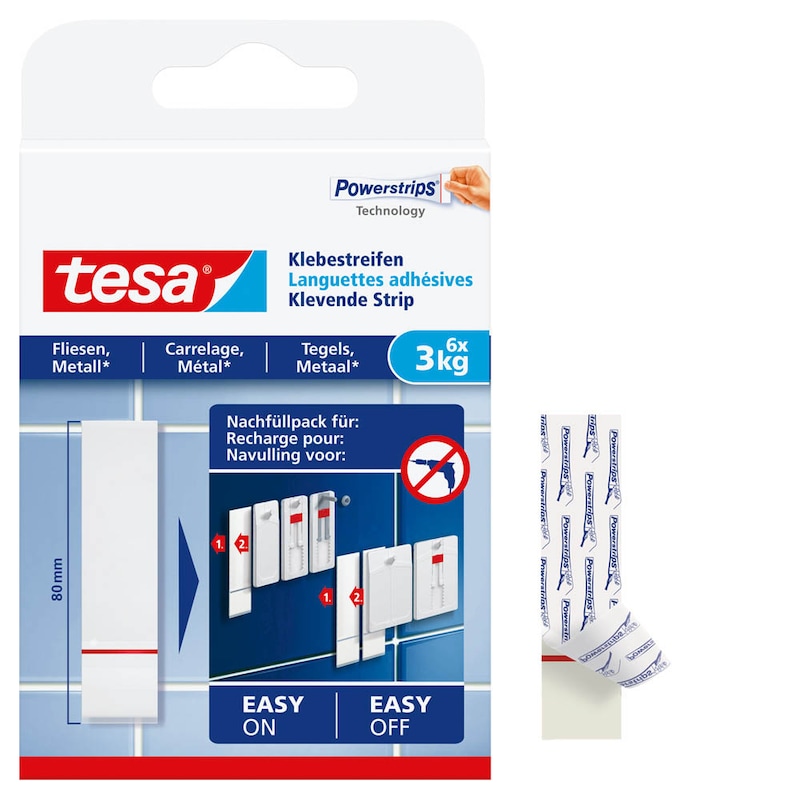 Artikelbild 2 für tesa Powerstrips Klebestreifen für max. 3,0 kg 2,0 x 8,0 cm, 6 St., Artikelnummer 386180 Artikelbild 3 für tesa Powerstrips Klebestreifen für max. 3,0 kg 2,0 x 8,0 cm, 6 St., Artikelnummer 386180 Artikelbild 4 für tesa Powerstrips Klebestreifen für max. 3,0 kg 2,0 x 8,0 cm, 6 St., Artikelnummer 386180