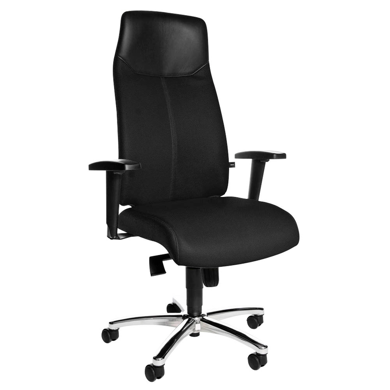 Die Rückenlehne aus angenehmem Polstermaterial sorgt dafür, dass Sie stets einen hohen Sitz-Komfort genießen können. Hier erfahren Sie mehr zu den Besonderheiten der Rückenlehne: Hohe Rückenlehne mit Nachfedereffekt und eingearbeiteter Kopfstütze in echt Lederbezug schwarz. Damit Sie auch immer Ihre ideale Sitzposition finden, können Sie die Neigung der Rückenlehne jederzeit auf Ihre Bedürfnisse einstellen. Die Armlehnen sind zusätzlich ein wichtiger Bestandteil für ein gesundes Sitzen. Die Arme werden entlastet und eine aufrechte Position kann einfacher eingenommen werden. Sie können die Armlehnen in der Höhe verstellen und somit individuell anpassen. Um die Muskulatur außerdem zu entlasten, verfügt der Topstar Bürostuhl High Sit Up, SU39T BG0 Stoff schwarz, Gestell chrom über eine Kopfstütze.