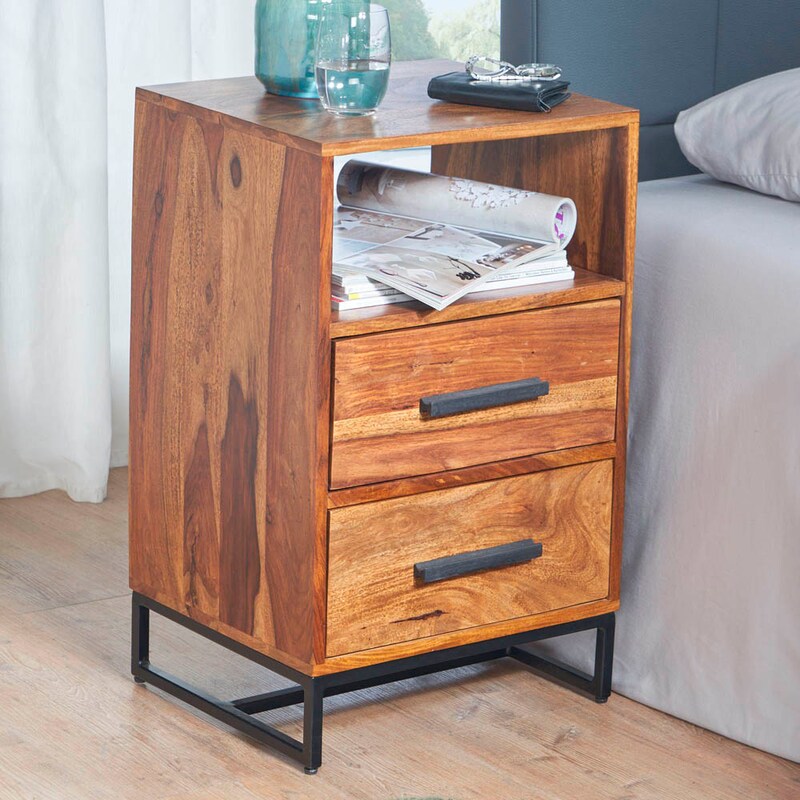 Der WOHNLING Nachttisch Massivholz sheesham 35,0 x 40,0 x 66,0 cm bietet eine praktische Ablagefläche neben dem Bett. Hier können Sie eine Leselampe, Fernbedienung, Wecker oder Accessoires abstellen. Dekorativ und praktisch zugleich!
